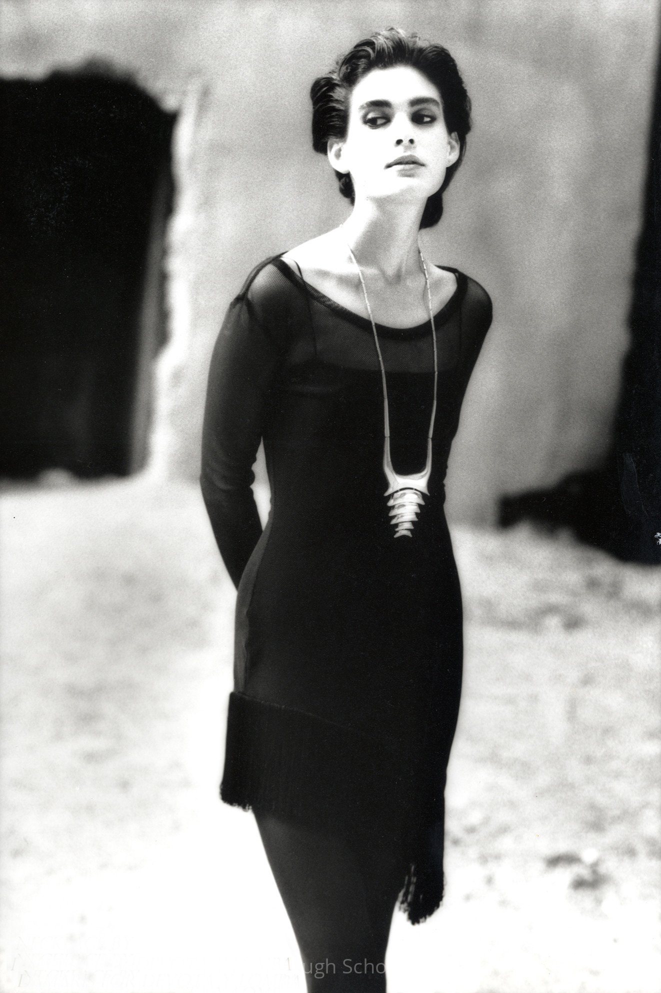 Black and white fashion portrait wall art featuring elegant woman in minimalist dress.